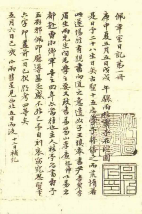 嗜好印章的高心夔在生命的許多重要時刻,都會用到印章。他的日記始于咸豐庚申(1860)五月五日,這一天,高心夔躊躇滿志,知恥后勇,開始他的“佩韋室日記”之旅: