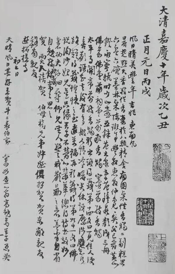 例如在浙江臺州人黃秉義(1874-1920后)日記中,就清晰記載了印章的使用規(guī)則。黃秉義丙午(1906)正月初二日日記記載:“余自本月初一日起,與友人來往信件名字之‘頓首’草字中蓋一‘侶’字篆字小戳一方,與長輩來往信件名字之下書‘謹(jǐn)肅’,或‘叩首’字上蓋一‘秉義謹(jǐn)肅’篆字圖書一方,以作記號。……另有官名及別字號等及一切圖章蓋用余書篆字或行書用,均不得為憑也?!笨梢婞S秉義使用印章十分謹(jǐn)慎,僅僅書信中的印章,就因收信人的輩分、信件的重要程度等,而使用不同印章;即便是信套,黃秉義也用不同印章加以區(qū)分。在私人信件之外,對于借貸憑據(jù)、收條等,黃秉義又使用另外一套用印規(guī)則,以此作為憑據(jù)。