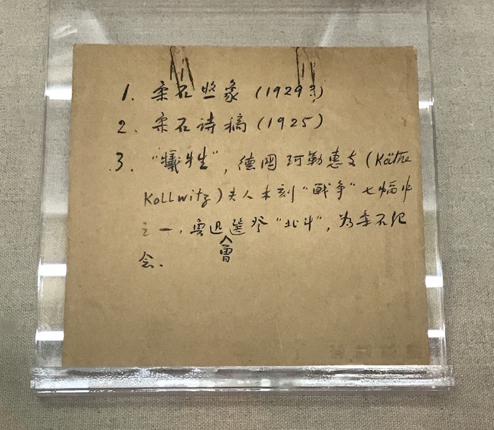 展廳現(xiàn)場,魯迅在柔石遺物封袋上寫的目錄