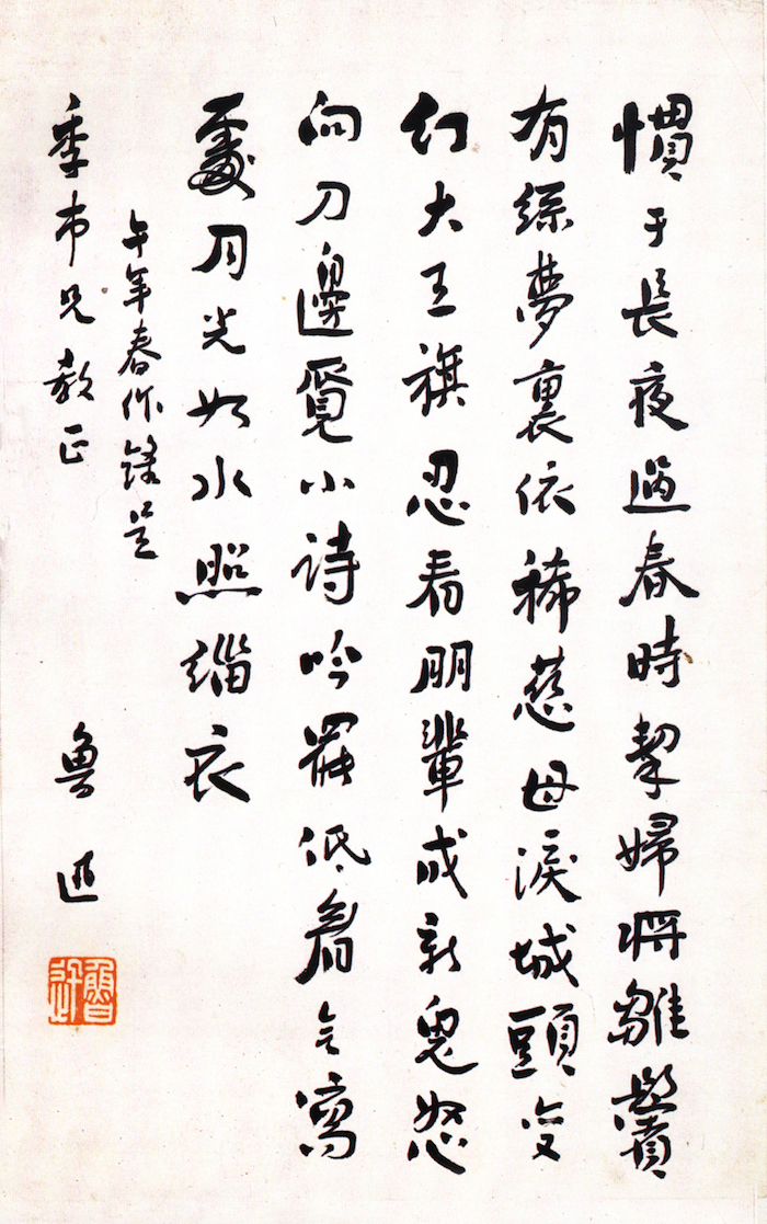 魯迅書贈(zèng)許壽裳的《無題》詩
