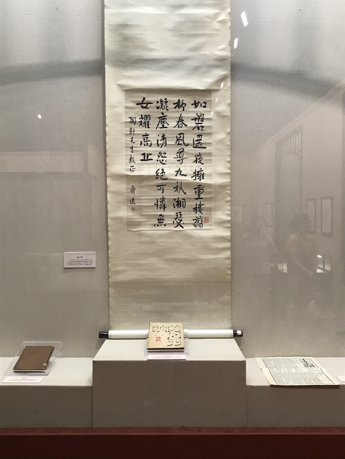 展廳現(xiàn)場,魯迅書《答客誚》(左)