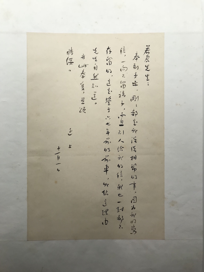 此外,展廳中,魯迅致許壽裳(季芾)、孔另境的三封信則講述著另一件關(guān)于革命友誼的故事。1932年暑假前,孔另境為中共黨組織傳遞蘇聯(lián)之革命書刊而在天津被捕,解送北平某軍事機(jī)關(guān)羈押。后經(jīng)魯迅托人全力營救,由李霽野、臺(tái)靜農(nóng)保釋出獄。魯迅于10月25日致許壽裳信即為營救孔另境之事而作。之后,1935年,孔另境著手編輯《當(dāng)代文人尺牘鈔》(后改名《現(xiàn)代作家書簡》)。魯迅致孔另境信是前者對于后者討要來往書信的回復(fù)。而最后一封魯迅致孔另境信寫于1936年7月22日??琢砭撑c李霽野、臺(tái)靜農(nóng)結(jié)下了深厚的友誼,他們之間的來往和通訊比較頻繁,所以魯迅寫信向孔另境咨詢兩人的住址。