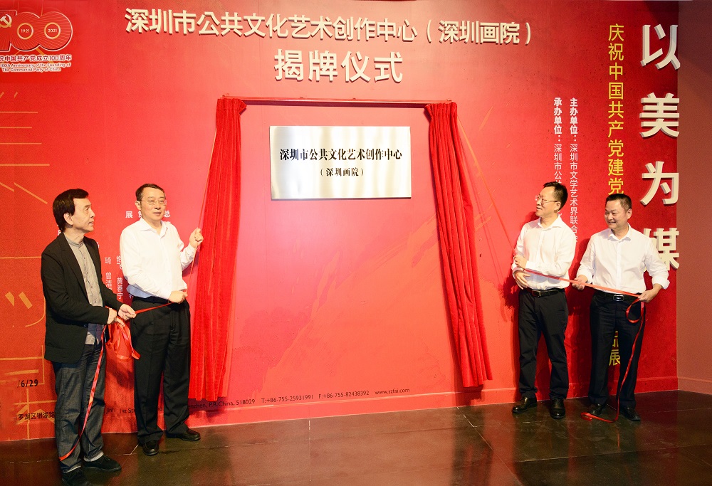揭牌儀式上,深圳市委宣傳部常務副部長陳金海在致辭中表示,深圳市公共文化藝術創(chuàng)作中心(深圳畫院)正式成立,這是深圳文藝界的一件大事。中心匯聚了一大批高精尖創(chuàng)作人才,相關領域的高層次藝術家將在這個平臺得到融合發(fā)展,實現(xiàn)新的跨越,取得更大進步。要牢固樹立以公共文化藝術創(chuàng)作為中心的工作理念,認真履行各項工作職責,用心用情做好服務保障,創(chuàng)作出更多兼具思想價值、審美價值和趣味性的公共文化藝術作品,更好滿足人民群眾精神文化生活新期待。