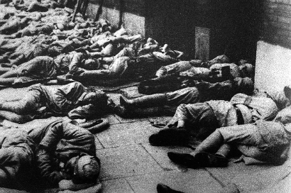 解放軍戰(zhàn)士在上海街頭露宿