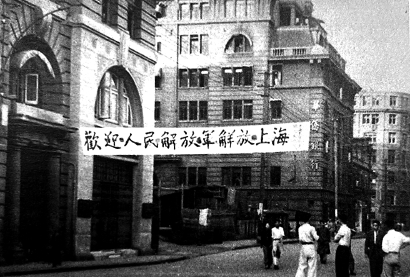 上海市民在九江路附近歡迎解放軍