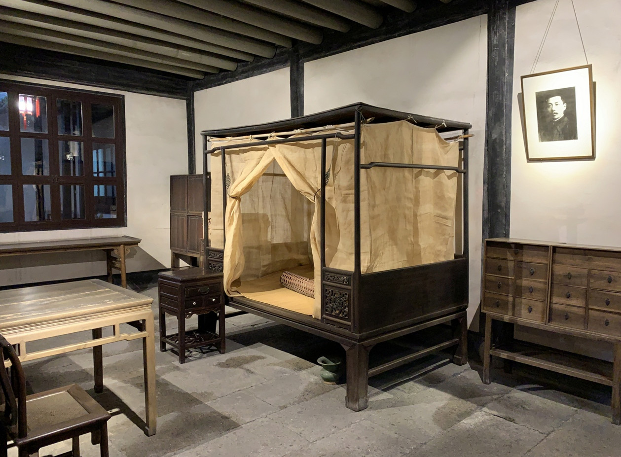 周家新臺(tái)門位于紹興城內(nèi)東昌坊口,建于清嘉慶年間,是周氏家族三個(gè)臺(tái)門中建成時(shí)間最晚的一個(gè)。1881年9月25日,魯迅出生于此,并一直生活到18歲去南京求學(xué)之前。魯迅從日本留學(xué)歸國(guó)后曾在紹興府中學(xué)堂和山會(huì)初級(jí)師范學(xué)堂擔(dān)任教職,這一期間他也居住于此。魯迅常常在這里備課、寫作到深夜。他的第一篇文言小說(shuō)《懷舊》就是在此寫成的。臥室里陳列著的一張鐵梨木床,系魯迅當(dāng)年睡過的原物。圖為魯迅的臥室。