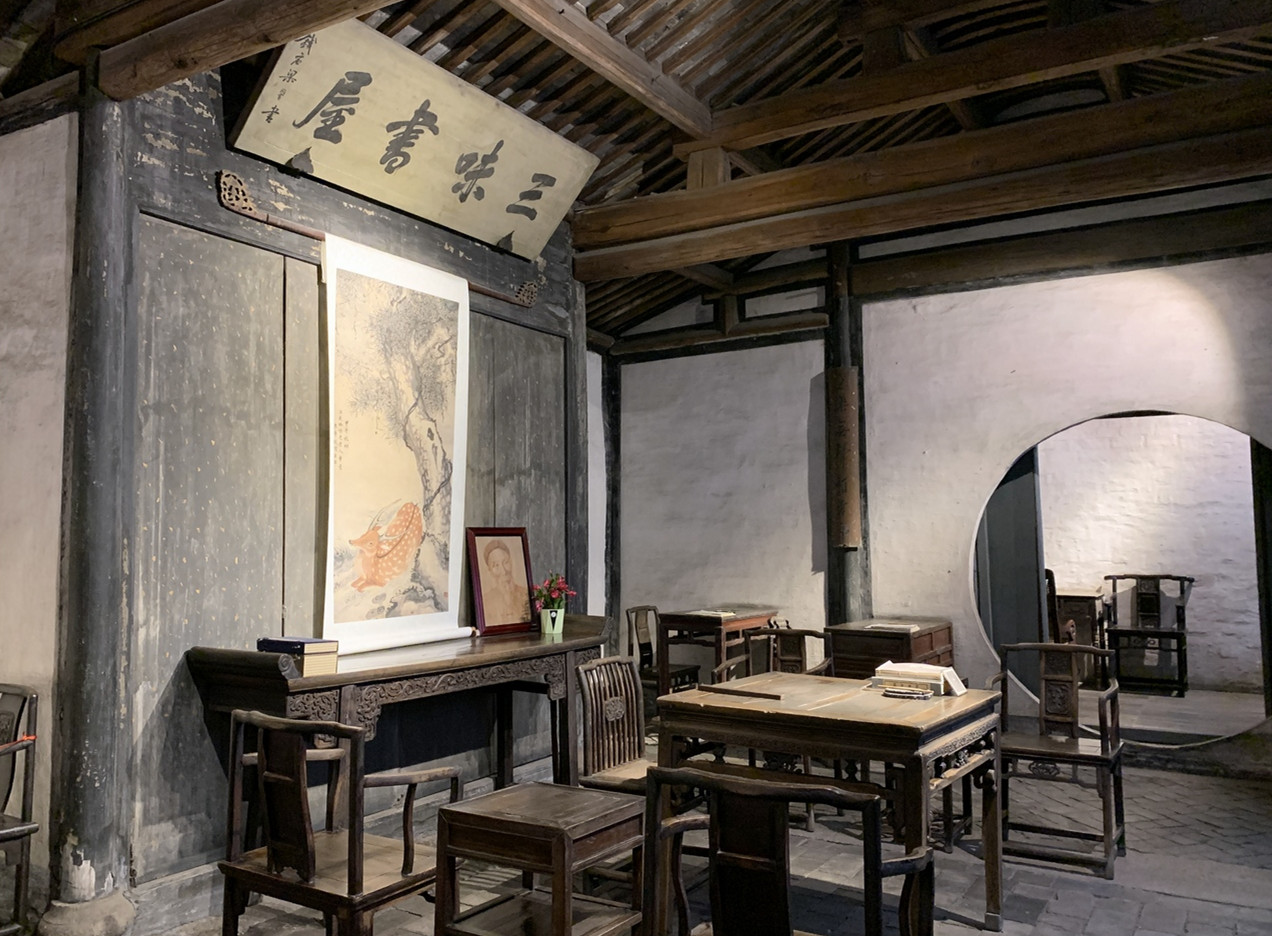 三味書屋約有35平方米,正中上方懸掛著“三味書屋”匾額,是清朝著名書法家梁同書所題?!叭丁钡囊馑紴椋鹤x經(jīng)味如稻粱,讀史味如肴饌,諸子百家味如醯醢。魯迅在三味書屋的老師壽懷鑒(字鏡吾)是紹興城中極方正、質(zhì)樸、博學(xué)的人。在三味書屋的近五年間,魯迅依次學(xué)習(xí)了《幼學(xué)瓊林》《四書》《五經(jīng)》等。
