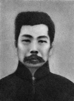 1903年攝于日本。這張照片被稱為“斷發(fā)照”,是現(xiàn)存最早的魯迅單人照。魯迅在弘文學(xué)院剪辮后,拍照留念,并贈(zèng)與同學(xué)兼同鄉(xiāng)友人許壽裳一張。許壽裳稱魯迅贈(zèng)與照片同時(shí),還贈(zèng)七言詩(shī)一首與他,“靈臺(tái)無(wú)計(jì)逃神矢,風(fēng)雨如磐暗故園。 寄意寒星荃不察,我以我血薦軒轅?!濒斞溉ナ篮螅S壽裳在回憶錄中將這首詩(shī)定名為《自題小像》。魯迅一生很看重這張照片,多次將其洗印贈(zèng)友。