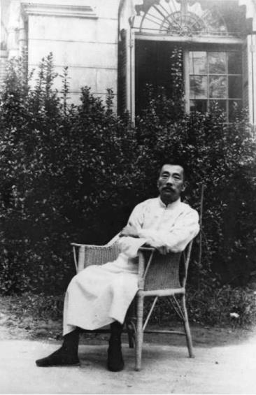 1925年7月4日攝于北京。為《阿Q正傳》英譯本所攝。魯迅在當(dāng)日日記中記載此事:“午后往中央公園,在同生照相二枚。”《阿Q正傳》英譯本的譯者梁社乾,在翻譯中曾得到魯迅的幫助。譯本于1926年由上海商務(wù)印書館出版,但魯迅的照片未被印入。