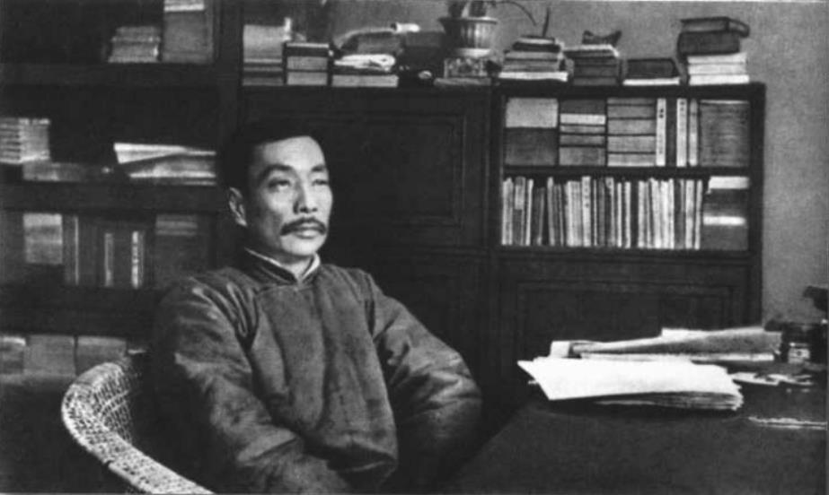 1933年5月26日攝于上海?!段餍新洝纷髡摺⒚绹?guó)記者埃德加?斯諾翻譯魯迅小說(shuō),準(zhǔn)備編入《活的中國(guó)》一書,極盼得到魯迅一張近照。這張單人照即專門為此事所攝,魯迅對(duì)這張照片很滿意。此照片最早與斯諾撰寫的《魯迅評(píng)傳》一起,刊登在1935年1月出版的美國(guó)《亞細(xì)亞》雜志上,以后又刊登在1936年底英國(guó)倫敦出版的《活的中國(guó)》一書的扉頁(yè)上。魯迅逝世后,于萬(wàn)國(guó)殯儀館供人吊唁的巨幅遺像,就是由這張單人照放大而來(lái)。