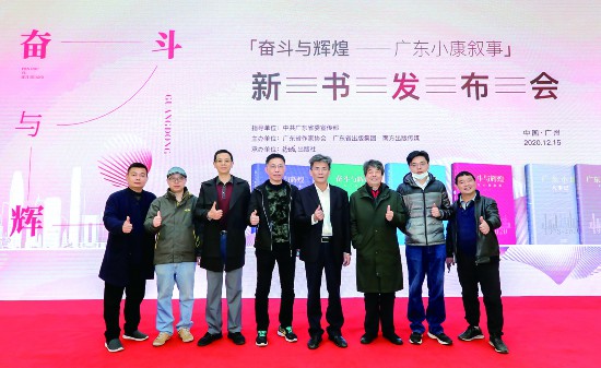 2020年12月15日,由中共廣東省委宣傳部指導(dǎo),廣東省作協(xié)、廣東省出版集團聯(lián)合主辦的重大主題創(chuàng)作《奮斗與輝煌——廣東小康敘事》新書發(fā)布會在廣州舉行。圖為該書部分作者合影