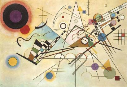 經(jīng)過對色彩的集體開悟,抽象派畫家們進(jìn)一步向線條和幾何形狀開掘。數(shù)學(xué)中常見的直線、曲線、方形、圓形、三角形此時成了主角。三角形不太受寵,它在古典繪畫的風(fēng)頭(隱形的)已過,最受青睞的是圓形和方形,各有陣營。