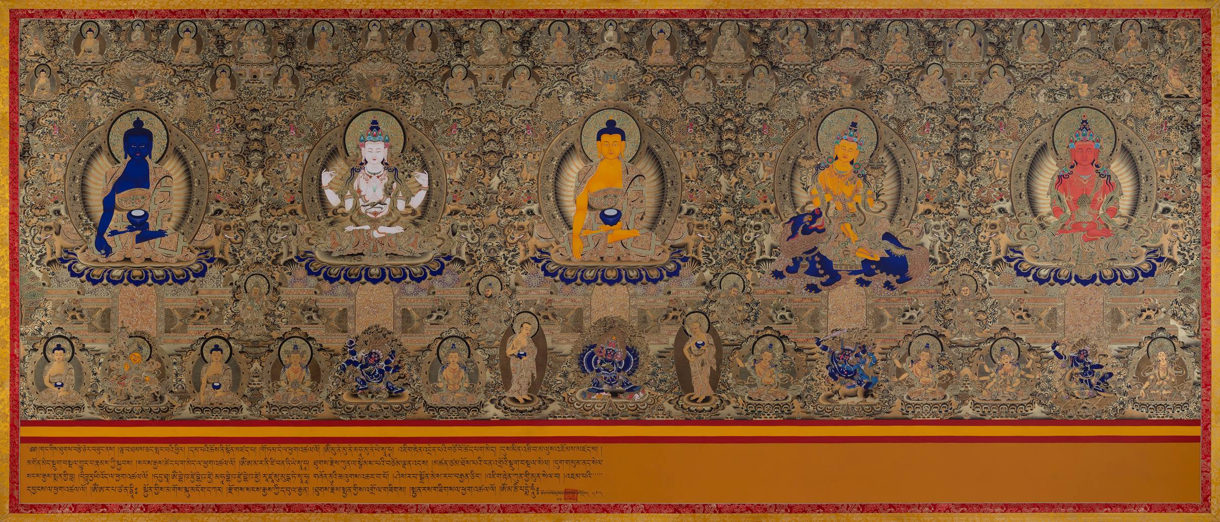 《吉祥五尊》,仁青才讓,唐卡,350cm x 160cm