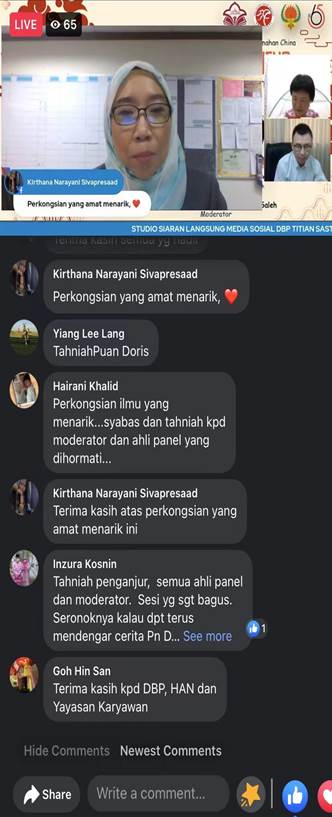 讀書會通過國家語文局官方網(wǎng)絡(luò)平臺jendeladbp.my公開面向全國中學(xué)及馬來語讀者群,臉書、推特、Youtube等渠道同時進行現(xiàn)場直播。這是馬來西亞主流讀者群首次通過馬來語讀書會接觸中囯當(dāng)代長篇小說,他們紛紛通過推特等對話平臺表達自己的看法和感受,有些學(xué)校表示想邀請主講人到學(xué)校做講座,分享中國文學(xué)作品。