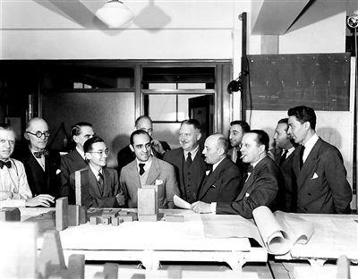 梁思成在紐約與國(guó)際著名建筑師們討論聯(lián)合國(guó)總部大廈方案