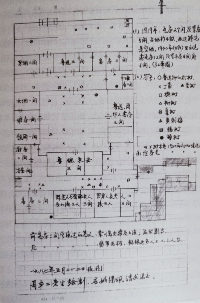 4、東廂房。南邊的一間住女傭、中間的一間做堆房、北邊的一間做飯所(飯廳)。上面談到,東西廂房的北側(cè)山墻上各辟一門,故而門的朝向必然是第三進,也就是后院。因此吃飯必須要穿過東邊的門道,換句話說是進入后院。由于這個地理環(huán)境,兄弟參商以后,魯迅不再去后院,自然只能在自己的房子里吃飯了。魯迅在1923年7月14日的日記中這樣寫道:“是夜始改在自室吃飯,自具一肴,此可記也?!保?0)