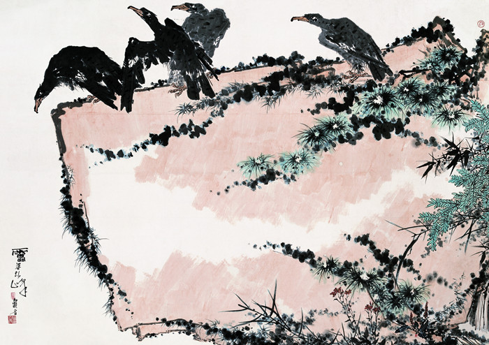 《鷹》潘天壽 紙本設(shè)色 縱 247厘米 橫357厘米 北京畫院藏