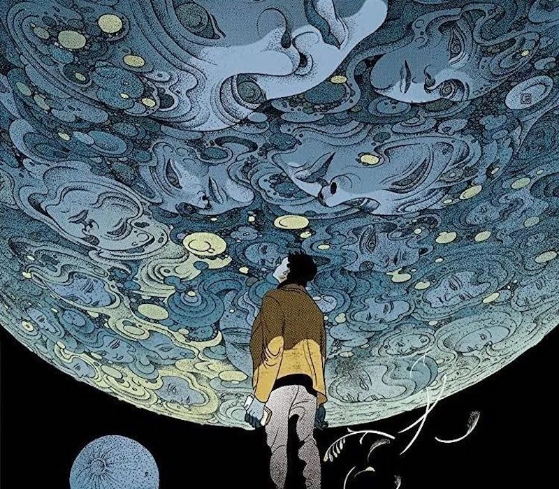 主人公來到索拉里斯星的探測(cè)站,見到了自己已逝妻子的幻象,似乎反倒是神秘的索拉里斯星海洋在探測(cè)來到此處的人類的內(nèi)心世界(圖像藝術(shù)家:Victo Ngai)