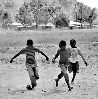 坦桑尼亞穆索馬,幾個孩子在踢自制的足球。孫麗華攝