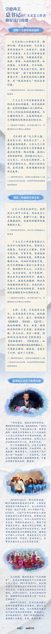 黨的十八大以來,總書記多次寄語廣大文藝工作者,要求大家把崇德尚藝作為一生的功課,努力追求真才學(xué)、好德行、高品位,做到德藝雙馨,成為先進(jìn)文化的踐行者、社會(huì)風(fēng)尚的引領(lǐng)者。