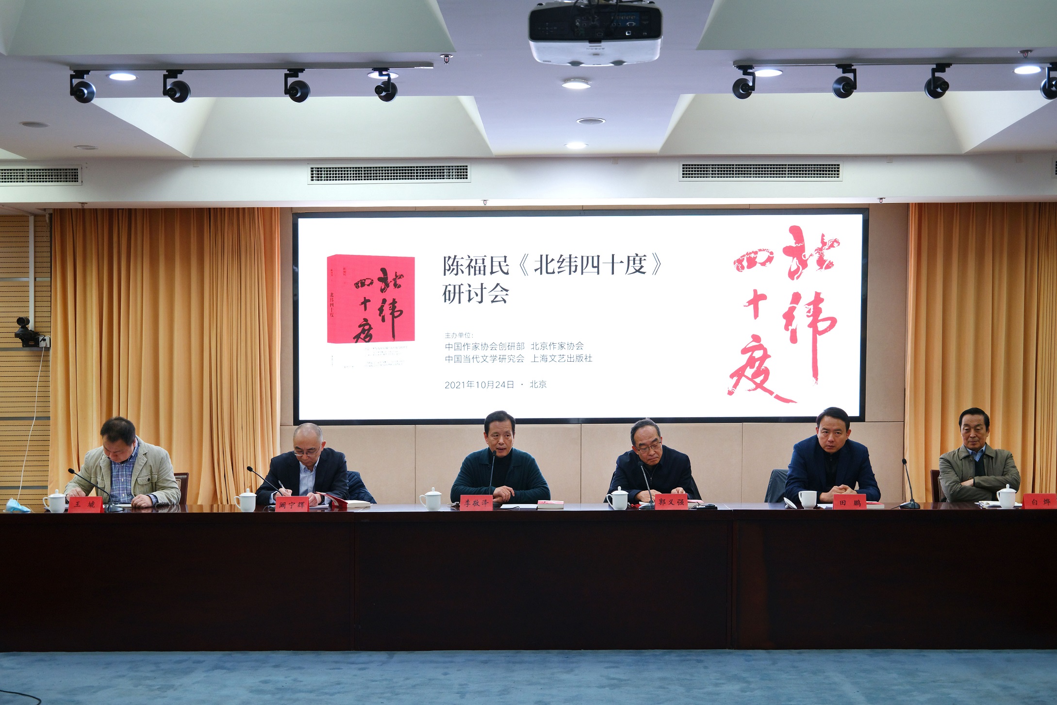 10月24日,由中國作家協(xié)會創(chuàng)研部、北京作家協(xié)會、中國當代文學研究會和上海文藝出版社聯(lián)合主辦的“陳福民《北緯四十度》研討會”在京舉行。中國作家協(xié)會黨組成員、副主席、書記處書記李敬澤,中宣部副秘書長郭義強,上海世紀出版集團黨委副書記、總裁闞寧輝,北京市文聯(lián)一級巡視員田鵬出席研討會并致辭。白燁、孟繁華、梁鴻鷹、賀紹俊、鐘紅明、喬葉、寧肯、周曉楓、潘濤、楊早、王繼軍、劉大先、楊慶祥、黃德海、岳雯、張定浩、木葉、李林榮、徐剛等十余位專家與會。會議由北京作家協(xié)會副秘書長王虓主持。