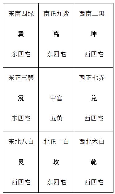 這就是傳統(tǒng)的九宮格。這里不做過(guò)多解釋,僅從色彩上做些簡(jiǎn)要分析,而色彩是:白、黑、碧、紫、黃、赤、綠。白是大吉,紫是小吉,綠次之,黑為兇位。吉方宜建正房與院門(mén)。但是,如果主人的身份不夠,不能夠在中軸線上辟門(mén),只能選擇東南角,因?yàn)槟抢锸羌亍iL(zhǎng)輩居住北房,明間設(shè)置祖先的牌位的原因也在于此,因?yàn)槟抢锸谴蠹亍?/p>