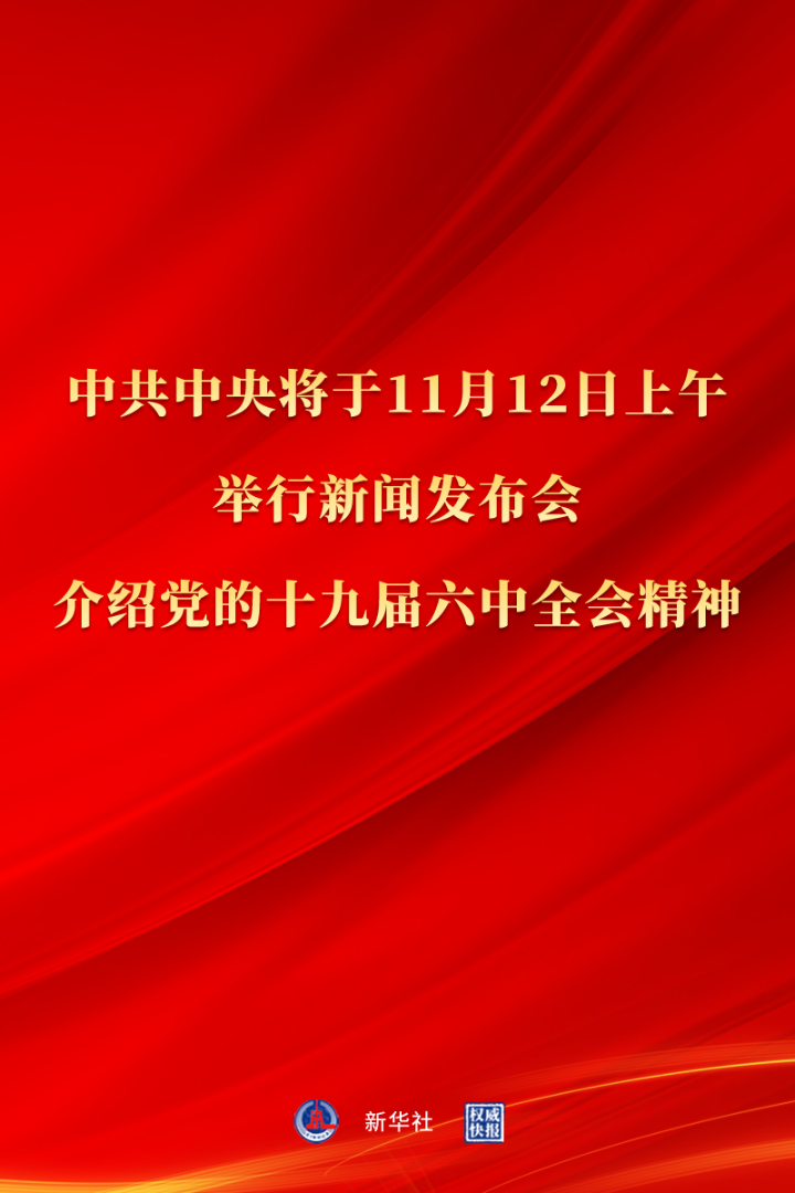 中共中央將于11月12日上午10時(shí)舉行新聞發(fā)布會