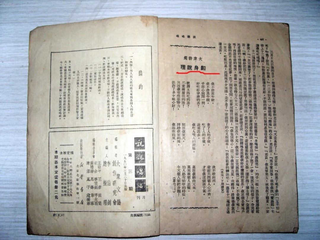 《說說唱唱》,李伯釗、趙樹理任主編,1950年1月在北京創(chuàng)刊,1955年3月???,共出刊63期。