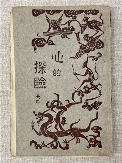 魯迅搜集、研習(xí)漢畫(huà)拓片,不拘泥形式,創(chuàng)造性地運(yùn)用在封面設(shè)計(jì)上,成為翻譯圖書(shū)在裝幀設(shè)計(jì)上民族化的成功嘗試。1926年出版的高長(zhǎng)虹散文集《心的探險(xiǎn)》封面同樣融入傳統(tǒng)圖案,青灰的底色上繪制騰云駕霧的龍形,頂部以細(xì)碎云紋鋪陳,正中為飛騰于云間的群魔,都圍繞“心的探險(xiǎn)”四字作圍攻、試探態(tài),給人耳目一新的視覺(jué)沖擊。在該書(shū)的目錄頁(yè)先生特意留下注解:“魯迅掠取六朝人墓門畫(huà)像作書(shū)面。”這種將圖案與書(shū)名組合的設(shè)計(jì),也開(kāi)啟了書(shū)籍裝幀圖文并茂的新形式。