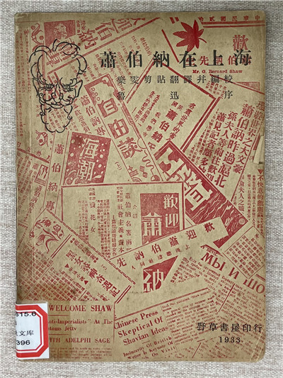 《蕭伯納在上海》的封面上鋪天蓋地是上海各家報(bào)紙刊刊登蕭伯納來(lái)上海的報(bào)道,剪切拼湊又互相遮蓋,土紅色相互穿插,烘托氣氛且很有時(shí)代感。黑色的蕭伯納勾線頭像位于下方,既能第一時(shí)間勾起人們對(duì)蕭伯納身份背景的好奇心,又傳達(dá)了先生對(duì)當(dāng)時(shí)社會(huì)跟風(fēng)狀態(tài)和政府控制輿論的強(qiáng)烈不滿。即使拿到今天來(lái)看,此種設(shè)計(jì)也是相當(dāng)不錯(cuò)的。