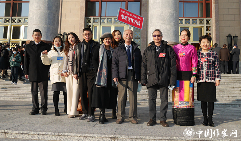 港澳臺代表團及中國作協(xié)外聯(lián)部工作人員在大會堂前合影