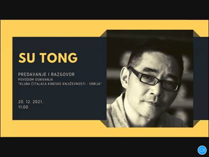 2021年12月20日,塞爾維亞“中國文學讀者俱樂部”成功舉辦作家蘇童的讀者見面會。這是俱樂部成立后的首場活動,以讀者見面會及研討會的形式在線上平臺舉辦。中國作家蘇童,塞爾維亞作家、GEOPOETIKA出版社負責人巴亞茨出席,貝爾格萊德大學語言學院副教授、文學翻譯米拉女士擔任主持人, 貝爾格萊德大學語言學院東方語言系副教授、漢學家安娜女士擔任活動翻譯,貝爾格萊德大學師生等當?shù)刈x者近70人參加了此次活動。