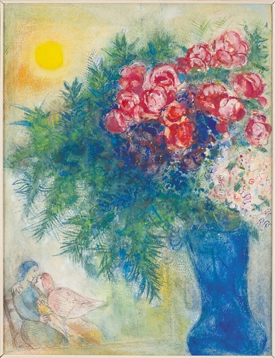 馬克·夏加爾的畫作充盈著真實和夢幻融合的色彩:他把生活融入作品,從自然界形象中尋找素材;以畫布為舞臺,構建出夢境般優(yōu)美的童話世界。近日,夏加爾的作品在北京、上海、成都等中國城市巡展,展出他從1925年至1981年間創(chuàng)作的150多幅經(jīng)典原作,包括油畫、水彩、水粉、坦培拉、蝕刻版畫等多種媒材。置身展廳,觀眾仿佛被詩意和溫情包圍,畫家用夢幻般斑斕的色彩點亮觀者心靈的歡愉,用濃濃的愛與詩意的鄉(xiāng)愁為寒冷的冬日帶來暖意。