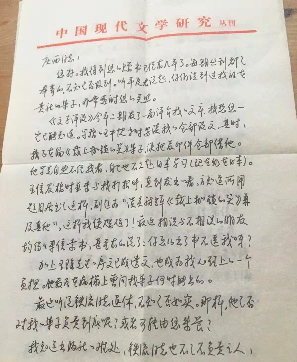 您好。我得到您的贈書已經(jīng)有幾年了。每期叢刊都是奉寄的,不知是否收到。聽平原君說起,你們談到過我放在貴社的集子,非常感謝您的關(guān)照。