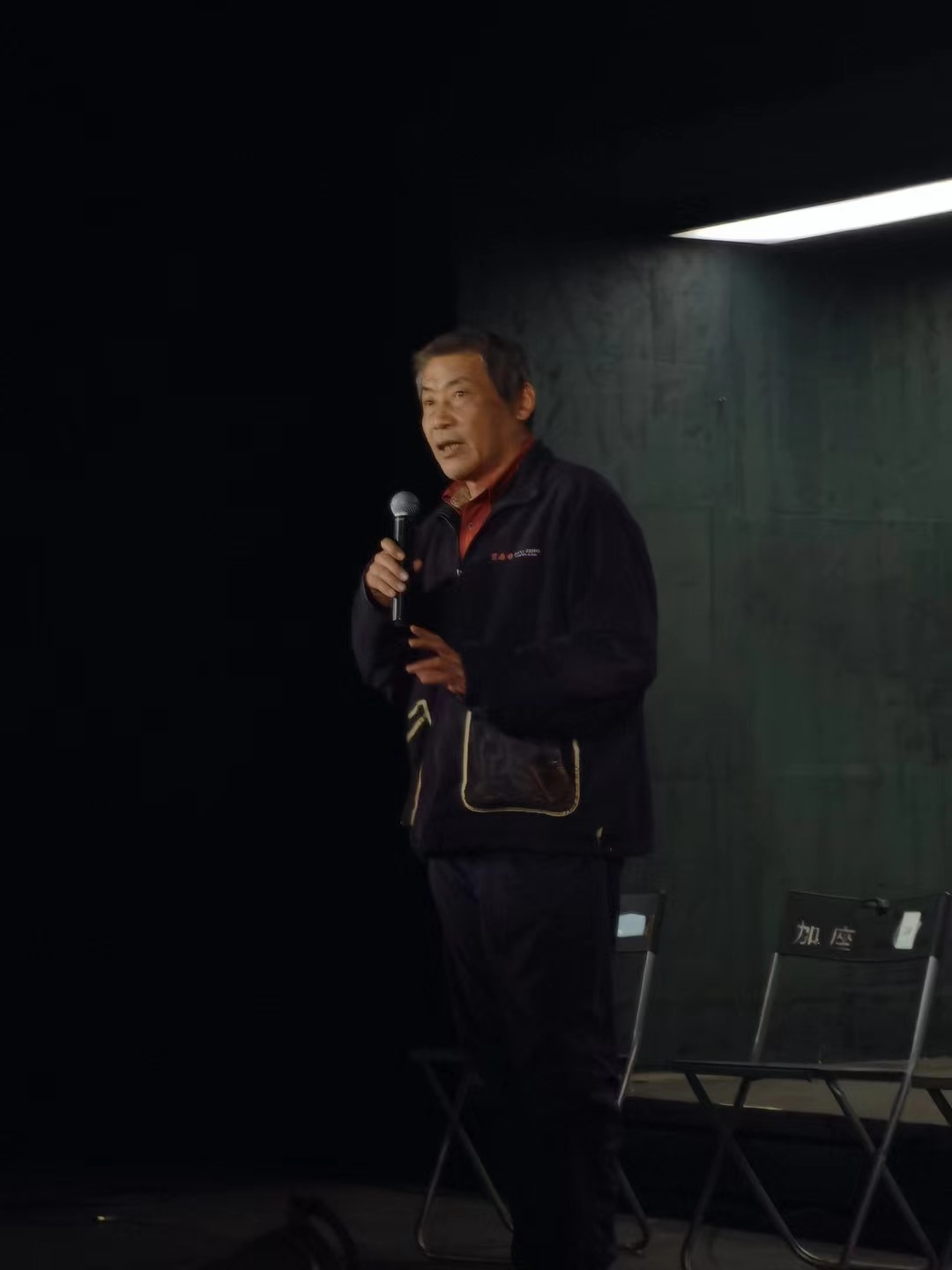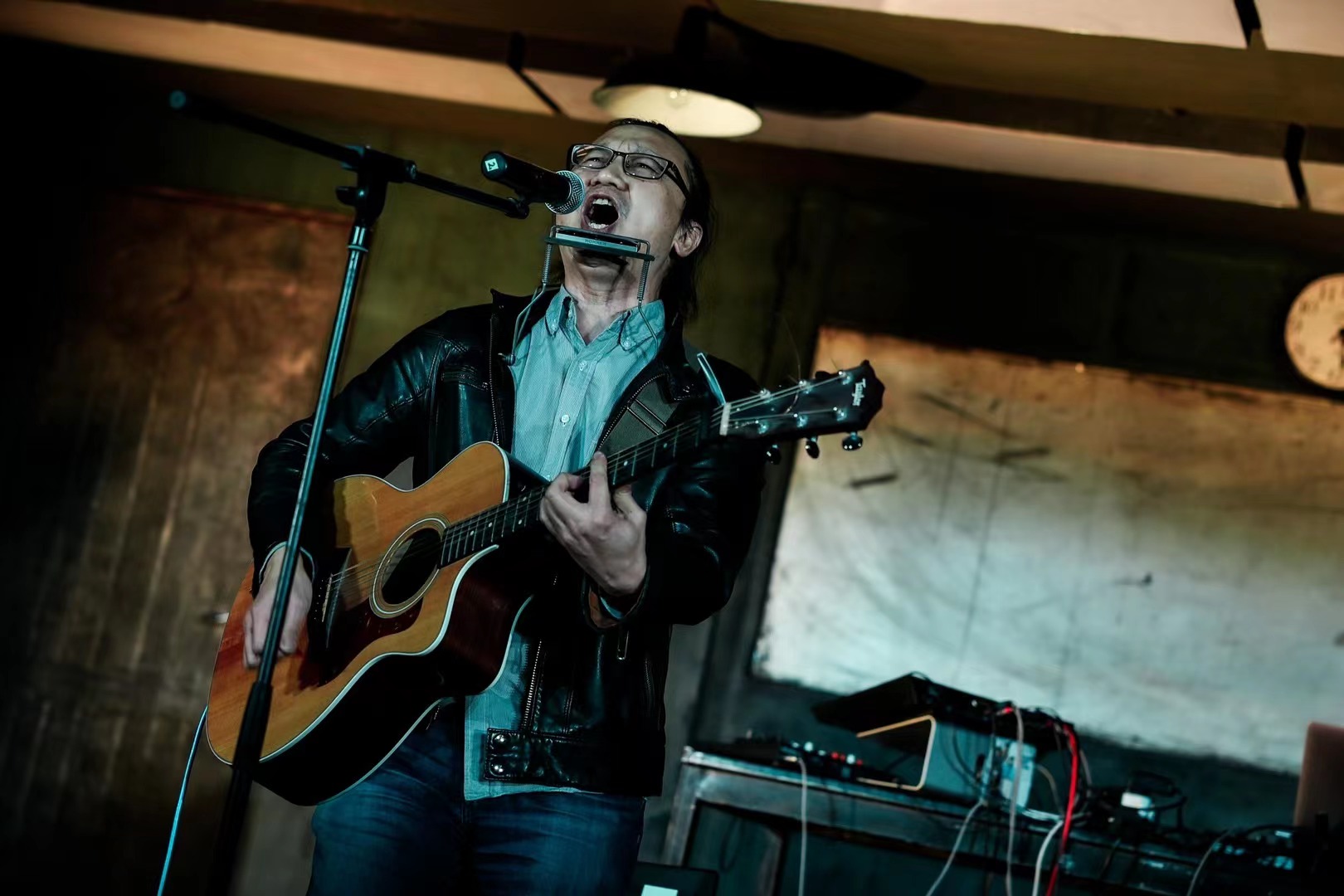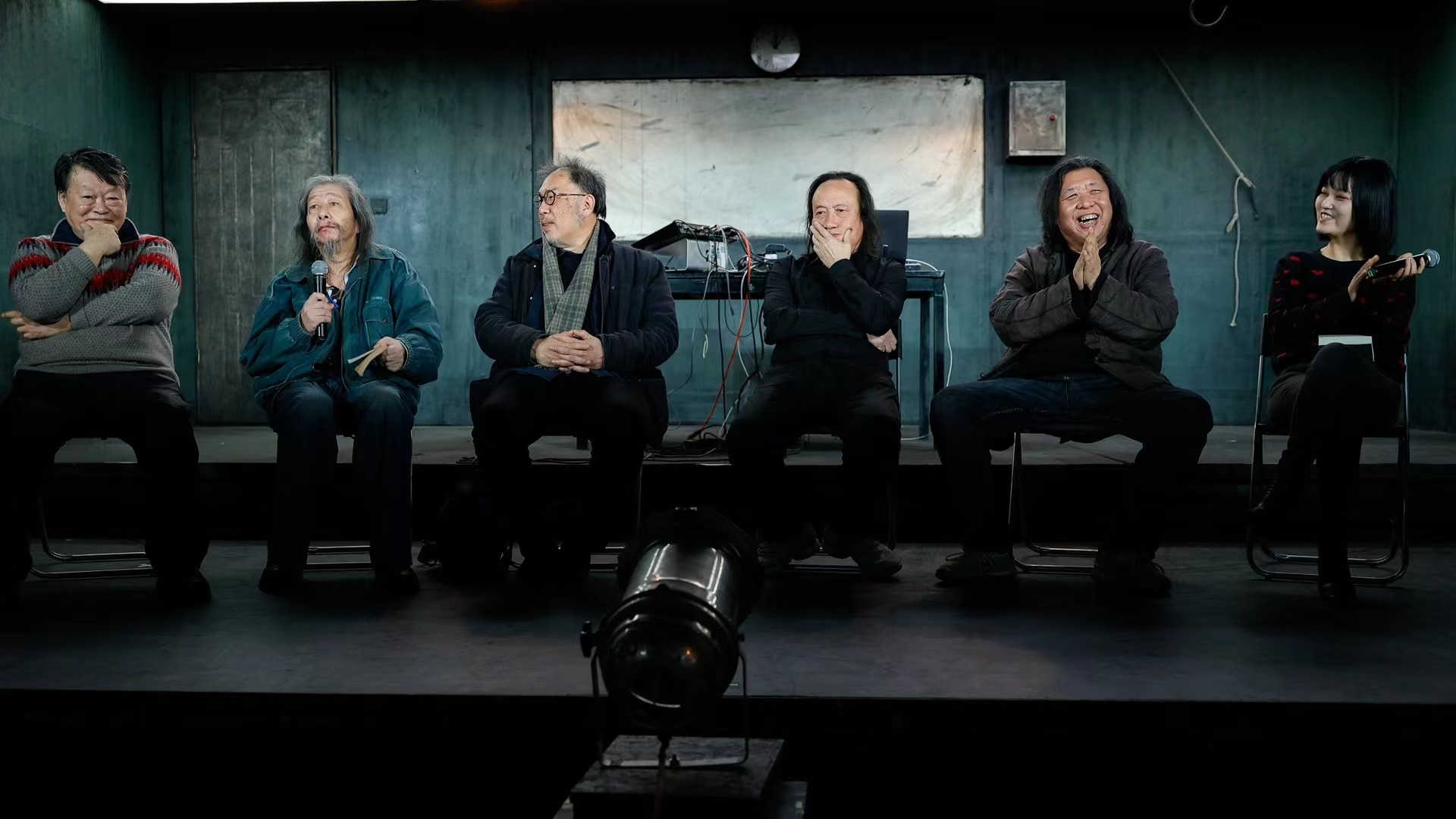 音樂人Gia Wang朗誦詩人宋逖作品時,詩集編者老賀在臺側(cè)沉思