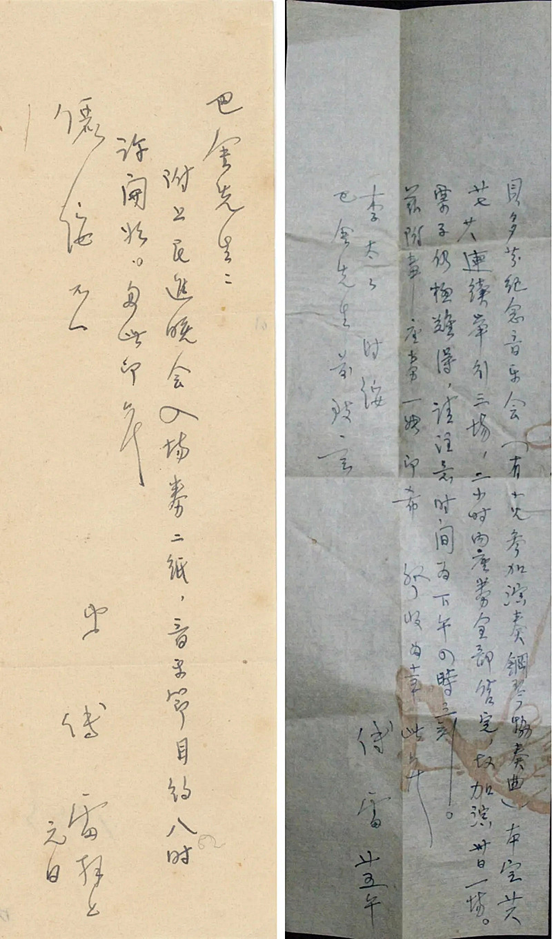其中有兩封短簡,是傅雷給巴金送音樂會的票子: