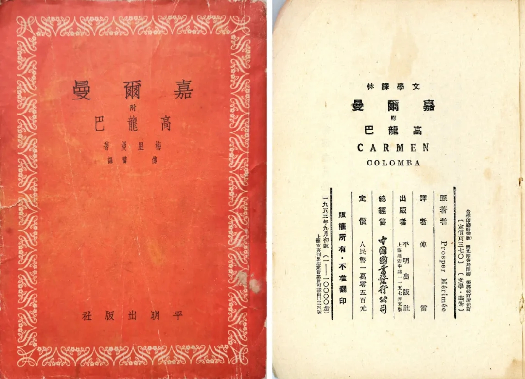 傅譯《嘉爾曼附高龍巴》封面及版權(quán)頁