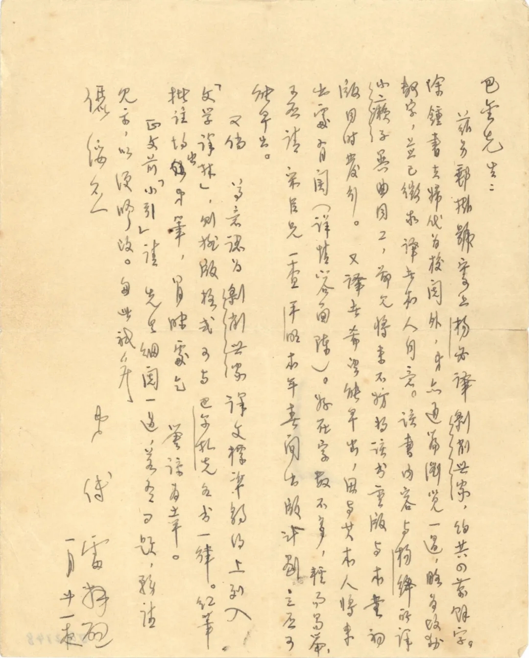 又倘尊意認為《剝削世家》譯文標準夠得上列入“文學譯林”,則排版格式可與巴爾扎克各書一律。紅筆批注均出弟筆,冒昧處乞鑒諒為幸。