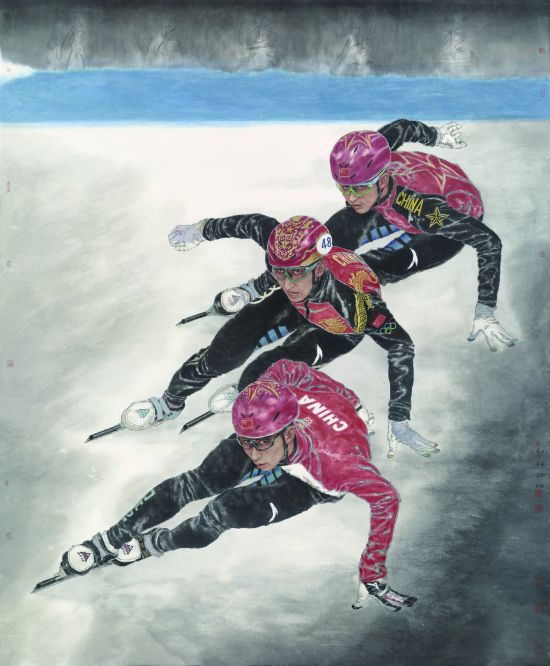 中國(guó)國(guó)家畫院院長(zhǎng)盧禹舜在致辭中說:“我們力圖以藝術(shù)的生動(dòng)形象講述奧林匹克的故事,精彩呈現(xiàn)中國(guó)和世界各國(guó)冰雪健兒自強(qiáng)不息、超越自我的拼搏歷程,深入闡釋綠色、共享、開放、廉潔的辦奧理念,展示北京冬奧會(huì)、冬殘奧會(huì)精彩、非凡、卓越的奧林匹克新篇章,進(jìn)而推動(dòng)中華文化和奧林匹克文化的進(jìn)一步融合交流,推動(dòng)我國(guó)同世界各國(guó)文明的互鑒與民心相通,與全世界共享奧林匹克文化之美,共享中華文化之美,以更美、更團(tuán)結(jié)、更人文、更和諧的‘天地人和’愿景,共創(chuàng)美好的希望與明天?!眹?guó)際奧委會(huì)副主席于再清在致辭中代表國(guó)際奧委會(huì)對(duì)此次畫展的舉辦表示熱烈祝賀。他說,北京成為全球第一座舉辦夏季奧運(yùn)會(huì)和冬季奧運(yùn)會(huì)的“雙奧之城”,是北京乃至整個(gè)中國(guó)的榮譽(yù)。中國(guó)國(guó)家畫院藝術(shù)家也與奧運(yùn)精神有著直接的淵源,并通過自身的藝術(shù)創(chuàng)作起到了重要的文化紐帶作用。