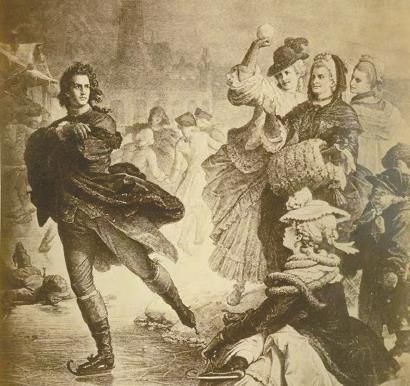 他就是歌德。世上有不少人知曉這位天才詩人也是狂熱的自然科學研究者,但他作為運動健將的一面卻少有人知。歌德擅長騎馬、擊劍和溜冰,尤其對于溜冰,歌德自稱到了“耽好無度”的地步。在自傳《詩與真》里,歌德愉快地回憶著: “在冰上度過這樣一個陽光燦爛的日子是不夠的,我們一直滑冰到深夜……耽于這種運動的我們,已把我們的正經(jīng)作業(yè)忘了個干凈。”