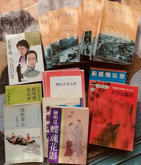 除了武打書,聚奇城三樓舊書店的老板娘還使勁推薦老上海鴛鴦蝴蝶派的言情哀情小說,說是這批八九十年前的海派作家以前也是寫過武俠的,像顧明道、張恨水(京派)、徐卓呆等等,都是《禮拜六》、《紅雜志》、《紅玫瑰》這些通俗文學雜志的專欄常客,鴛鴦蝴蝶派里徐枕亞的《玉梨魂》、周天籟的《亭子間嫂嫂》以前倒是有買來讀過,而武俠小說在那個年代也是歸在鴛蝴一派里的。恰好最近好友丁夏老師送了本剛出版的他編輯的漫畫家祖父丁悚先生寫的《四十年藝壇回憶錄》,書中倒有不少鴛鴦蝴蝶派的掌故,看來研究和收藏的品類又要逐漸增加了。