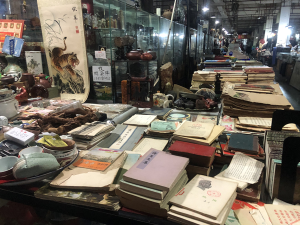 某日,因為喜歡上養(yǎng)金魚蘭壽,搜索到普陀區(qū)靈石路有家全市最大的觀賞魚花鳥市場。靈石路,1958年才建成,以山西靈石命名,跨了靜安、普陀、寶山三個區(qū),而花鳥市場地處普陀居民區(qū),周圍生活氣息相當濃厚。走進綠植蔥蔥的市場,看見實惠的金魚之王蘭壽頓時心生喜悅,因為蘭壽好看但難養(yǎng),價格又都偏貴,所以能買到合適練手的實屬不易。在市場里逛到深處,意外發(fā)現后排還有棟三層樓的商場,原來是賣古玩為主的“聚奇城”。城隍廟、云洲商廈以及以前的東臺路等都號稱上海的“潘家園”,但這趟偶然間撞進來,觀察下來發(fā)現這家才是價格公道利民的真“園”,里面一樓賣郵票錢幣為主,二樓有很多古董和舊書的攤位店鋪,三樓的地攤市集每到周五都是人頭攢動。
