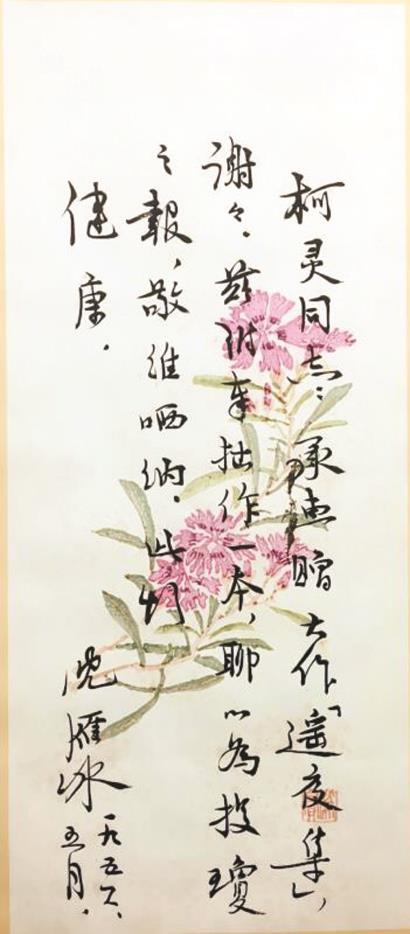 全信僅五十余字,更像是一張便條,放在今天一個(gè)手機(jī)短信就解決了,而茅盾偏偏選用了一幀菊花箋紙,工整娟秀地書寫信文。之所以這一紙書簡令人矚目是花箋和信札的結(jié)合令人懷想古代文士題贈(zèng)唱酬往來的遺風(fēng)?;ü{獨(dú)特的質(zhì)地、紋理、色彩既是書信手跡的承載者,其自身也是一件藝術(shù)精品,再加上墨筆文字的增華,真是清雅到骨子里。老派文人之間的情義聯(lián)結(jié)在過去多半是靠著一封封來鴻去燕,正所謂紙短情長,再遠(yuǎn)的山水阻隔藉由一紙書信便能維系始終。維系之中時(shí)常不乏互贈(zèng)書作,雙方都講究禮尚往來,以自家的拙作回贈(zèng)對(duì)方的大作。這種“投我以木瓜,報(bào)之以瓊琚”的文人禮俗現(xiàn)今仍有沿襲,只是意蘊(yùn)大減。電子郵件雖然快捷卻難有一紙書信上的溫度和氣韻,更難見書寫者的修養(yǎng)與襟懷。中國歷來均有“以信為文”的傳統(tǒng),古文中《報(bào)任安書》一類的尺牘文體數(shù)量相當(dāng)多。近代文壇也常有“以函代文”的風(fēng)習(xí),這便使得民國一代的知識(shí)分子特別注重魚雁往還,乃至許多時(shí)候書信勝過了見面交談,也勝過更先進(jìn)的電話電報(bào)。