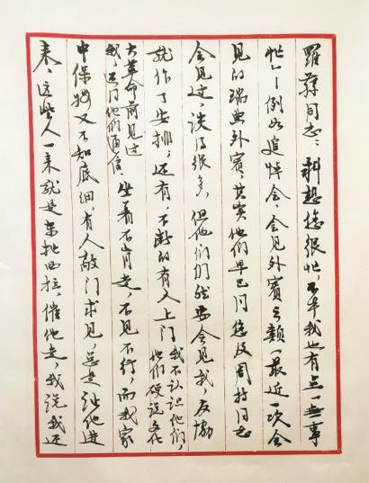 年近遲暮搬進(jìn)后圓恩寺胡同的茅盾已然成了眾人文中口中的茅公,寬敞疏朗的四合院內(nèi)的生活日漸單一。無官身輕,茅盾也不事花草不近古玩,甚至拒絕體育鍛煉,每天除了在后院居室內(nèi)踱步便是讀書寫字,他開始了人生最后一部大書的撰寫,便是始終念念不忘的回憶錄。展覽中最后部分也陳列出茅盾寫作回憶錄的部分手跡。只是這時(shí)的稿紙格寬行疏,書寫者也一改傳統(tǒng)變成了硬筆橫向書寫。晚年茅盾視力下降,左眼失明,右眼視力僅有0.03,再加身體衰弱,腕力不逮,漸已無法繼續(xù)握毛筆寫字。對(duì)于茅盾來說,這不過是形式上的變化而已,活到老寫到老的倔強(qiáng)依然見出老派文人心底的幾許執(zhí)著。茅盾一生筆耕硯田,作品全集達(dá)洋洋四十二大卷,在中國現(xiàn)代作家的作品數(shù)量名列前茅,留存下一個(gè)著作等身的文學(xué)遺產(chǎn)和精神財(cái)富。展覽雖有玻璃板相隔,觀者卻無不感到歷久彌新的手札文本上墨香四溢,這些泛黃的手稿正如泛黃的書卷,歷經(jīng)歲月沉淀淘洗抹不掉的是一紙紙流芳墨韻,雋秀娟麗的字跡下是茅盾溫文爾雅的儀態(tài)和清雅不俗的修為。手寫時(shí)代的結(jié)束令作家手稿愈見珍稀,引發(fā)今人對(duì)文字和文學(xué)的敬畏心。老派文人們的一筆一畫,一字一句書寫了歷史,也留存了生機(jī)。見字如晤,展信舒顏,與作家的隔空對(duì)望,已使手稿有了不少動(dòng)人詩情。