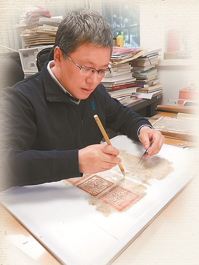 朱振彬在修復(fù)“天祿琳瑯”專藏