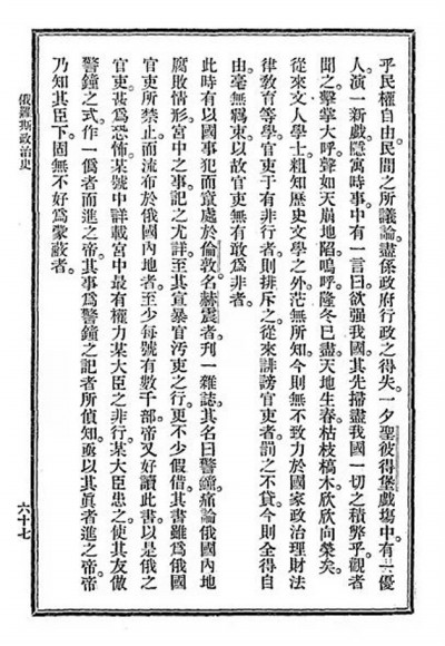 1903年3月上海作新社《近世政治史》第二部《俄羅斯政治史》一頁