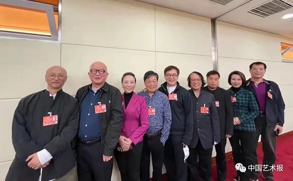 左起:全國政協(xié)委員、中國美協(xié)副主席、中國雕塑學(xué)會(huì)會(huì)長、上海美術(shù)學(xué)院院長、清華美術(shù)學(xué)院副院長曾成鋼,全國政協(xié)委員、國家博物館古代陶瓷研究所所長耿東升,全國政協(xié)委員、民進(jìn)中央文化藝術(shù)專委會(huì)副主任、中國歌劇舞劇院原副院長徐麗橋,全國政協(xié)委員、湖北省文聯(lián)名譽(yù)主席熊召政,全國政協(xié)委員、中國影協(xié)副主席成龍,全國政協(xié)委員、中國藝術(shù)研究院文學(xué)藝術(shù)創(chuàng)作院院長、中國陶瓷藝術(shù)大師朱樂耕,全國政協(xié)委員、故宮博物院研究員、原常務(wù)副院長王亞民,全國政協(xié)委員、北京京劇院青年團(tuán)團(tuán)長、京劇表演藝術(shù)家遲小秋,全國政協(xié)委員、北京電影學(xué)院教授侯光明
