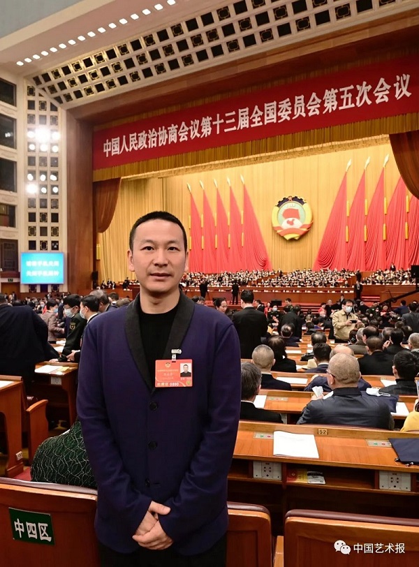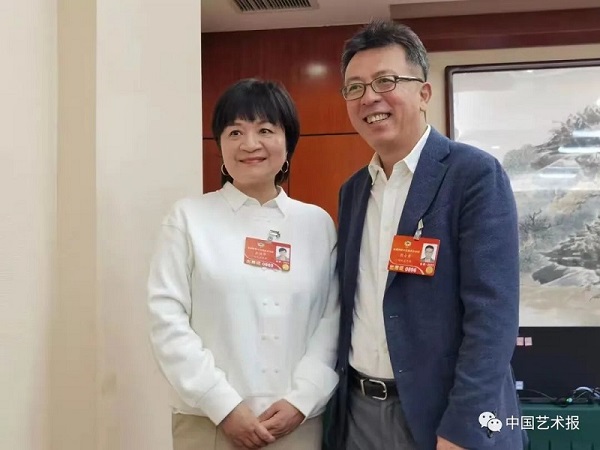 全國政協(xié)委員、中國視協(xié)副主席王麗萍(左),全國政協(xié)委員、中央美院油畫系教授劉小東(右)