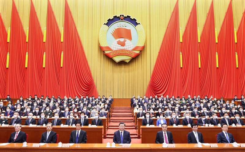 3月10日,中國(guó)人民政治協(xié)商會(huì)議第十三屆全國(guó)委員會(huì)第五次會(huì)議在北京閉幕。習(xí)近平、李克強(qiáng)、栗戰(zhàn)書(shū)、王滬寧、趙樂(lè)際、韓正、王岐山等在主席臺(tái)就座,汪洋主持閉幕會(huì)并發(fā)表講話。 新華社記者 鞠鵬 攝