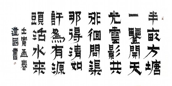 應(yīng)該是十年前,我在網(wǎng)上欣賞書法作品時(shí),發(fā)現(xiàn)了金農(nóng)的漆書作品,被筆畫方正,棱角分明,橫畫粗重而豎畫纖細(xì)、墨色烏黑光亮,猶如漆成的書寫特點(diǎn)深深震撼并吸引了,當(dāng)時(shí)我就迫不及待地進(jìn)行了一段時(shí)間的臨摹,雖然略有形似,但由于我的書法功力尚淺,難得神韻,練習(xí)了一段時(shí)間后就放棄了,繼續(xù)臨習(xí)楷書和行草,后來又臨習(xí)隸書。